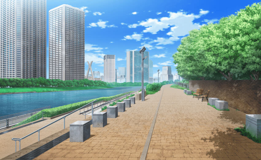 카구라 레이 : 네, 강 저편에 개를 데리고 있는 사람이 있습니다만, 저 개, 제가 키우는 개와 마찬가지로 골든 리트리버입니다. 귀여워…