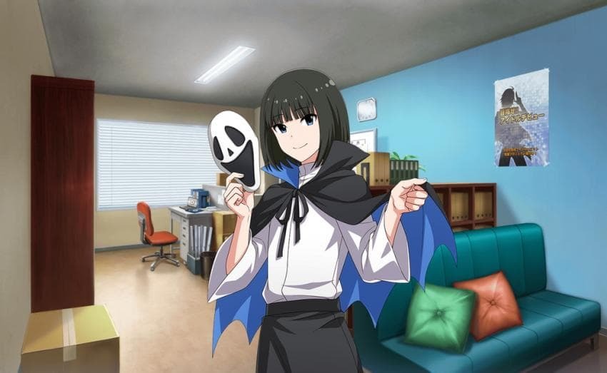 사쿠라바 카오루 : 파란색 꽃이나 하얀 비둘기를 날리는 연출… 이번 테마인 '하늘의 결혼식'에도 잘 맞군. 식장의 경험을 일에 활용한 것인가. …뭐, 그 점은 평가해도 되겠지.
